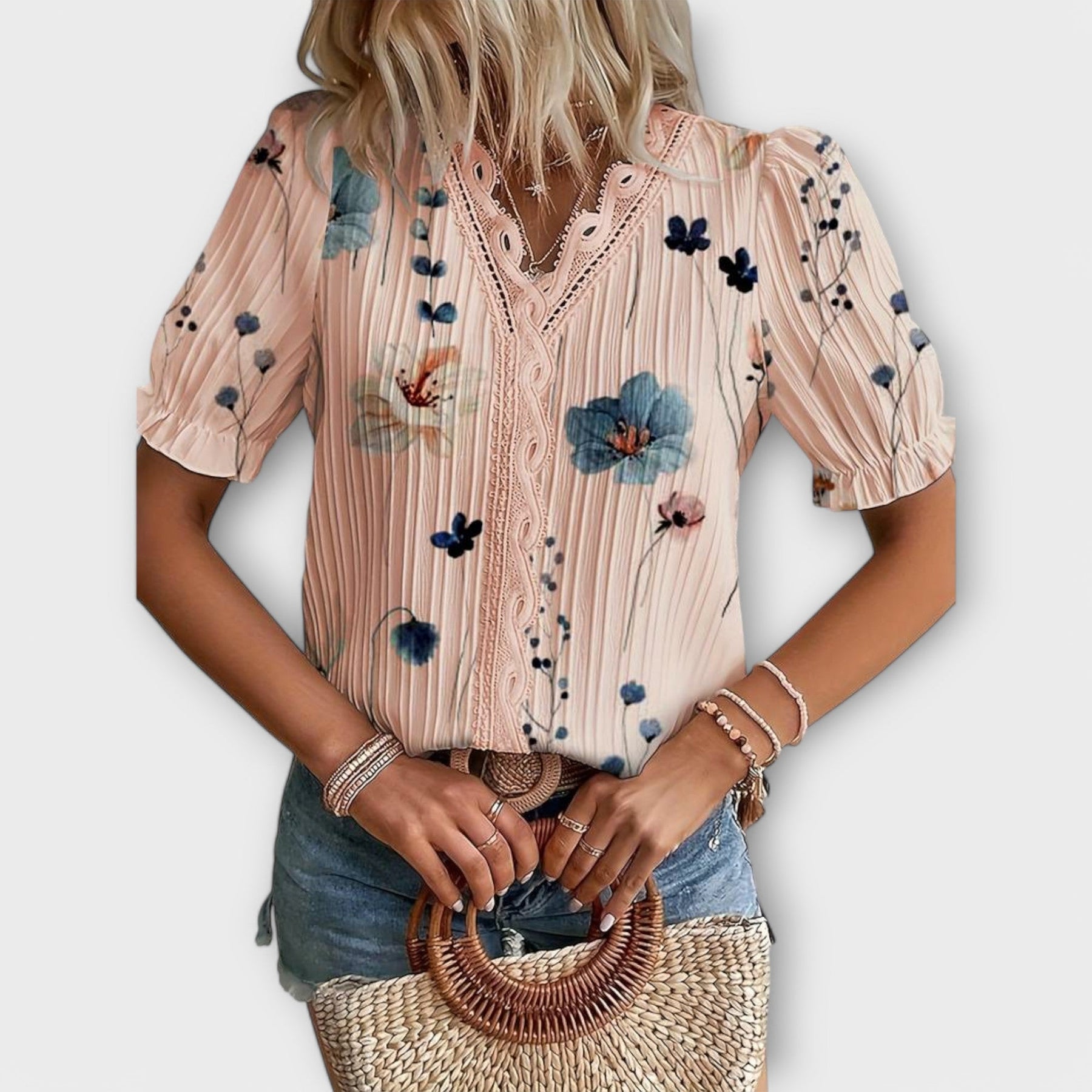 Embrace a soft, feminine touch with this delicately detailed blouse. Featuring floral prints, elegant lace trim, and gently puffed sleeves, it’s the perfect blend of vintage inspiration and modern flair. Whether you're heading out for brunch or a casual stroll, this blouse adds graceful beauty to any outfit.